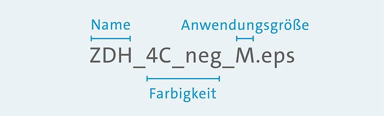 Das Logo besteht aus der Bildmarke und dem Schriftzug „ZDH”. Logo und Schriftzug werden immer zusammen verwendet.
