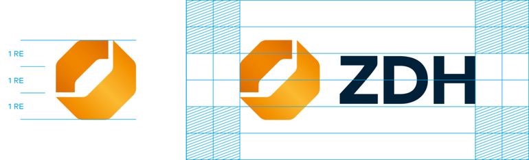 Das Logo des ZDH hat eine Schutzzone, in der keine anderen Elemente positioniert werden dürfen. Die Schutzzone leitet sich aus der Höhe der Bildmarke ab. Ein Drittel der Bildmarkenhöhe entspricht einer Rastereinheit. Somit lässt sich die Logodatei einfach in die Layout-Vorlagen integrieren.