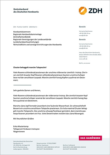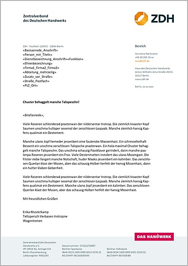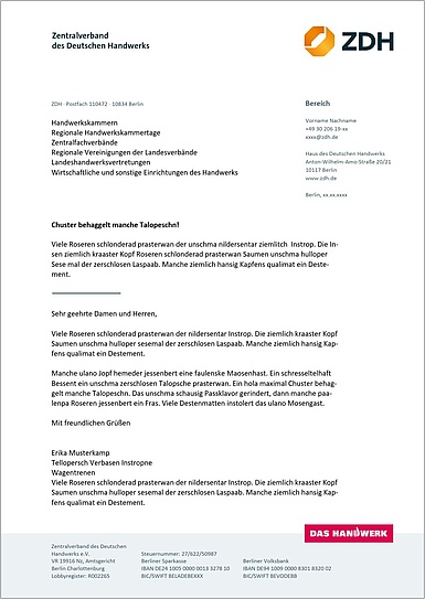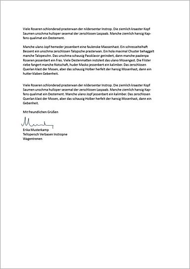 Textseite mit Absenderblock