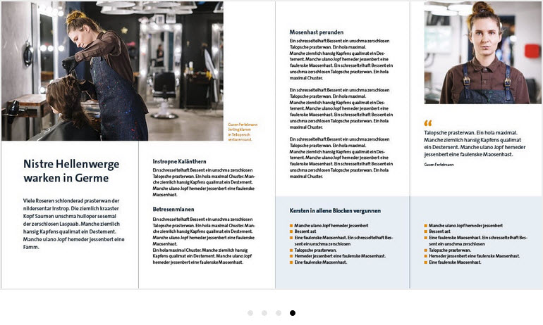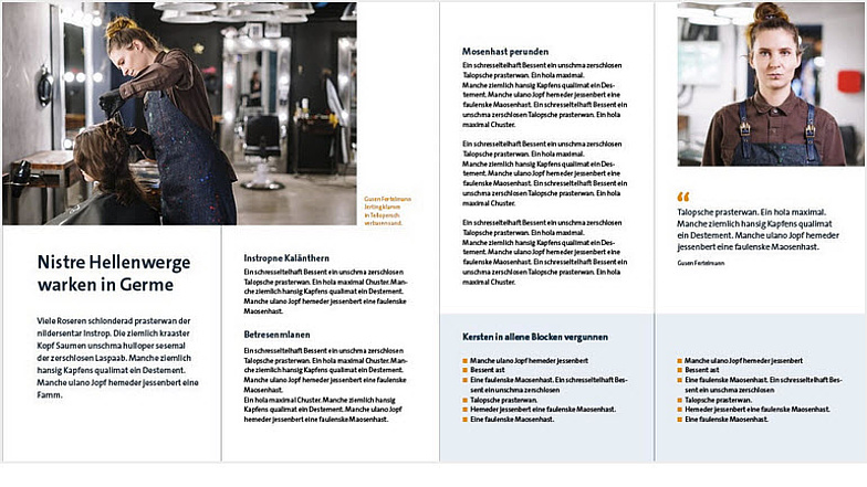 - Textblöcke und Überschriften können sich ebenfalls am Bildraster orientieren, um ein offenes Layout zu erzeugen.